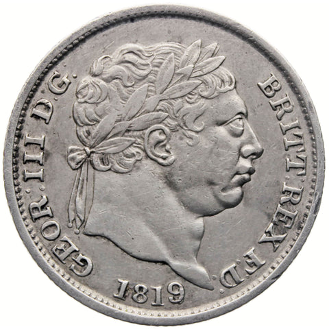 Rare 1819 over 3 Shilling George III Coin UK Silver