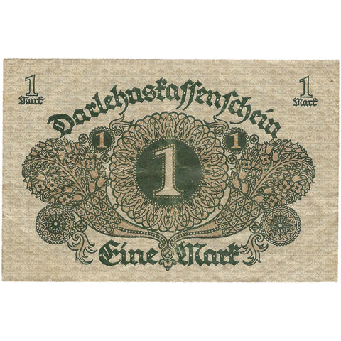 Reverse lettering: 1 Mark | 1 Mark Darlehnskassenschein 1 | 1 1 Eine Mark