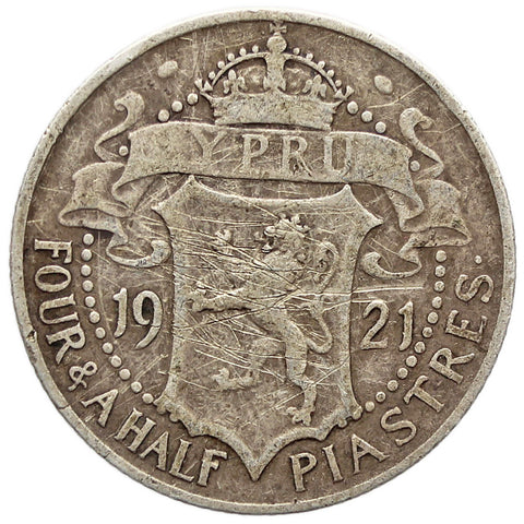 1921 4 and 1/2 Piastres Cyprus Coin George V Silver