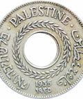 Obverse legend: “פלשתינה(אי) • PALESTINE • فلسطين 1935”