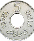 Reverse legend: “5 MILS ٥ ملات מילים”