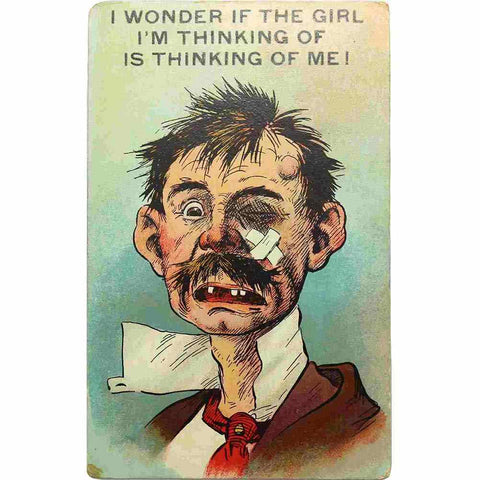 1940’s Vintage British Comic Postcard, I wonder if the girl I’m thinking of is thinking of me