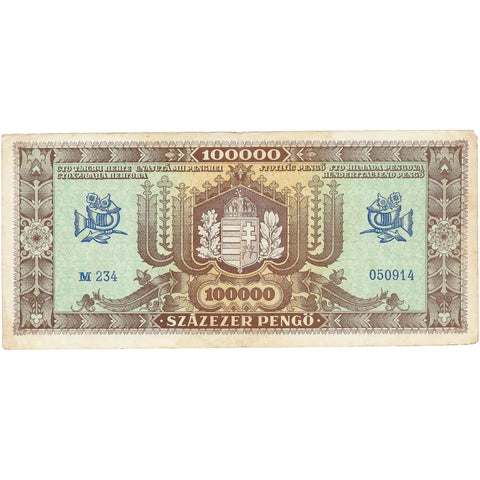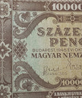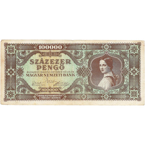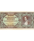 Obverse lettering: 100000 SZÁZEZER PENGŐ MAGYAR NEMZETI BANK