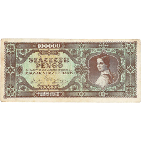 1945 100000 Pengő Hungary Banknote Portrait of a Valéria Rudas