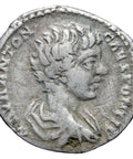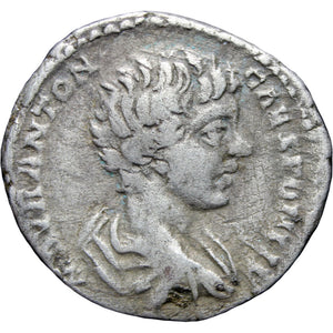 195-197 AD. Roman Empire Caracalla Silver Denarius Coin