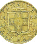 Reverse legend: “JAMAICA 19 50 HALF PENNY”
