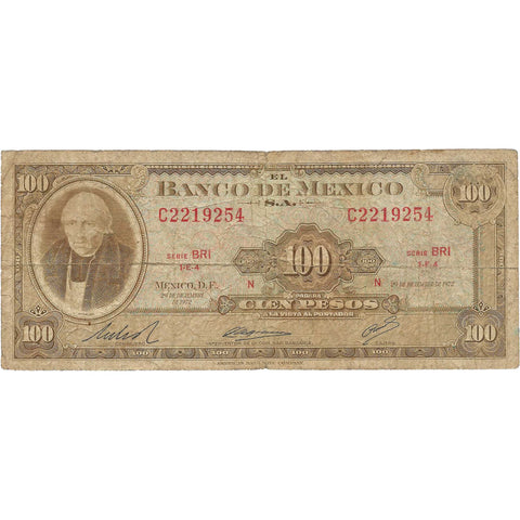 1961-1973 100 Pesos Mexico Banknote Portrait of M. Hidalgo