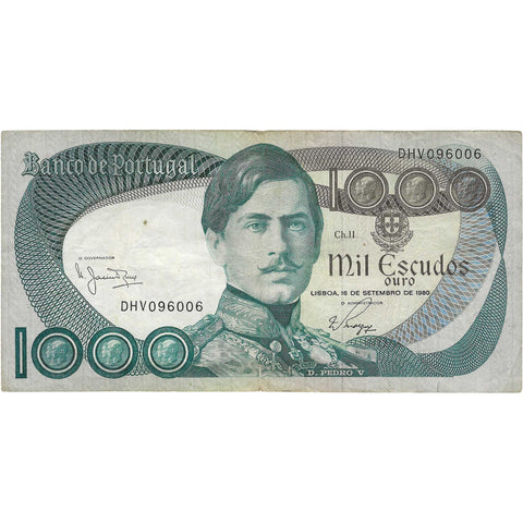 1980 1000 Escudos Portugal Banknote Portrait of Dom Pedro V