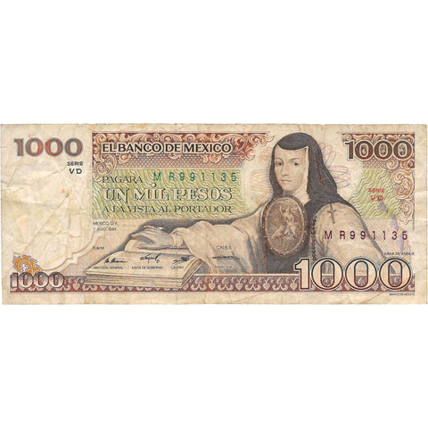 1983-1984 1000 Pesos Mexico Banknote Portrait of J. de Asbaje