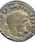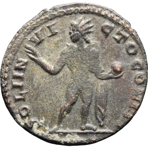 Reverse: Sol Radiate left, Chlamys draped over upper chest and left shoulder, holding Globe and raising right hand.