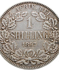 Reverse: Within a wreath of oak, 1 / SHILLING / 1897; around above, Z. AFRIK. REP.