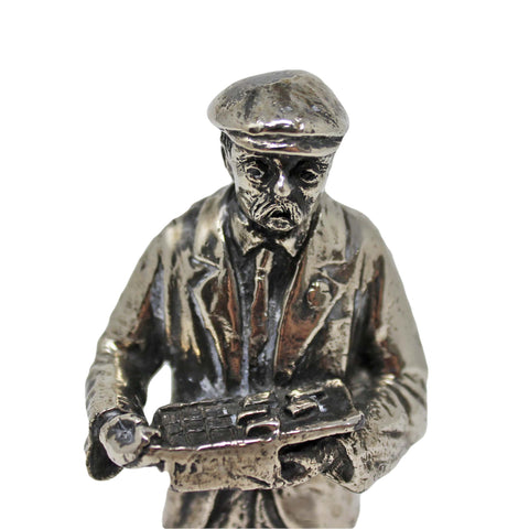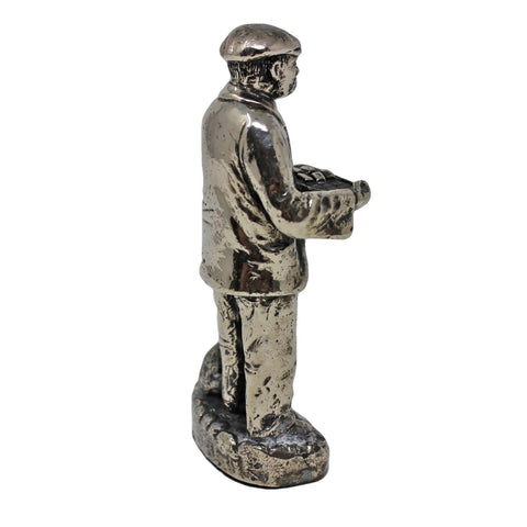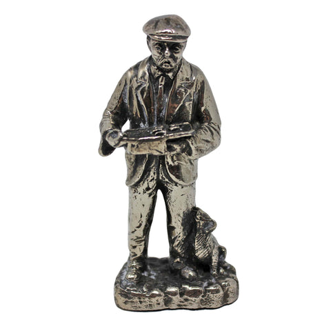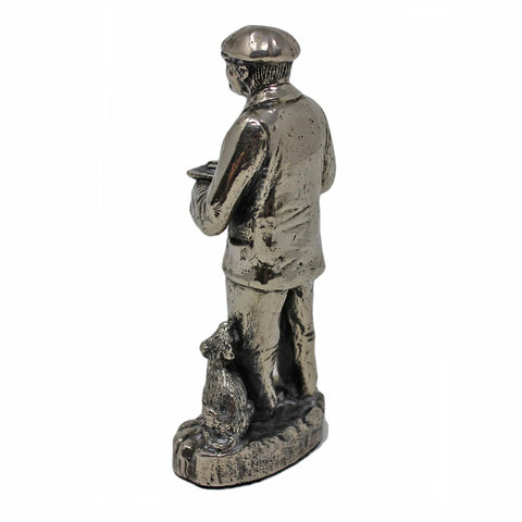Antique Heavy Iron Silver Plated Old Man with Dog Statue Figurine Home Decoration