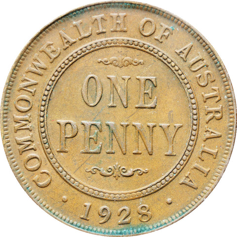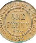 Reverse legend: “COMMONWEALTH OF AUSTRALIA ONE PENNY • 1928 •”