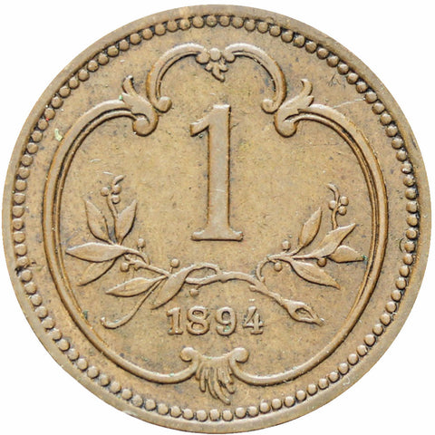 Austria Habsburg 1894 One Heller Franz Joseph I Coin
