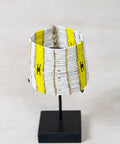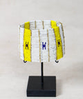 Bring the bold spirit of East Africa into your home with this stunning Maasai beaded cuff. Far more than just a piece of jewelry, this artisan-crafted work of art is presented on a minimalist display stand, transforming it into a sophisticated gallery piece for your bookshelf, desk, or mantle.
