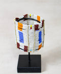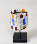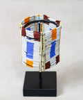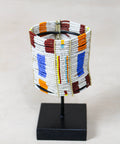 Bring the bold spirit of East Africa into your home with this stunning Maasai beaded cuff. Far more than just a piece of jewelry, this artisan-crafted work of art is presented on a minimalist display stand, transforming it into a sophisticated gallery piece for your bookshelf, desk, or mantle.