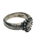 The textured band adds depth and contrast, giving the ring a tactile, timeworn elegance. Each piece is individually crafted, ensuring that no two are exactly alike — a true one-of-a-kind creation.