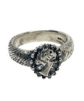 Evoking the grace of ancient portraiture, the Cameo Muse Ring is meticulously hand-carved in wax and cast in solid sterling silver using traditional lost wax techniques. Its centrepiece features a sculptural female profile framed by delicate granulated silver detailing, reminiscent of classical cameos from antiquity.