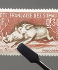 French Stamp 1959 0.3 Franc Brown Common Warthog (Phacochoerus africanus)