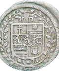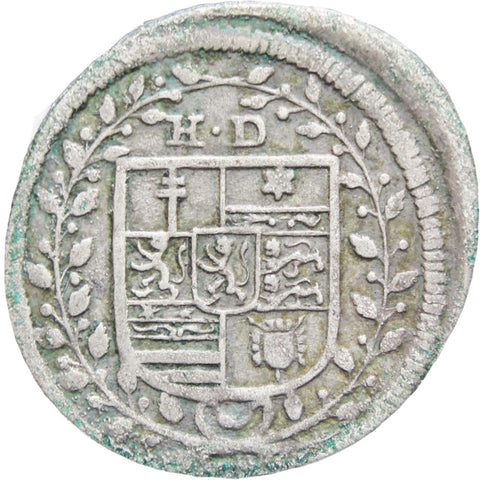 Obverse: Manifold Hessian arms in Spanish shield, HD above, all within laurel wreath