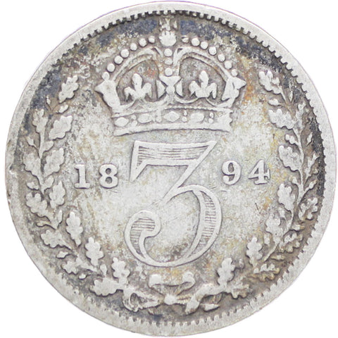 Great Britain Queen Victoria 1894 3 Pence Silver Coin (3rd portrait)