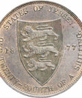 Reverse legend: “STATES OF JERSEY. 18 77 ONE TWENTY-FOURTH OF A SHILLING.”