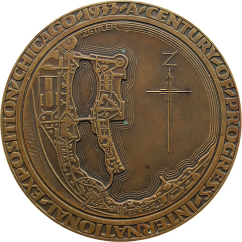 Large Art Deco style 1933 Century of Progress Exposition, Chicago World's Fair United States Medal Engraver Emil Robert