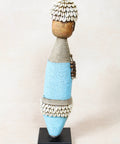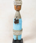 Namchi/Namji dolls are carved from African Rosewood, a legume tree native to the Democratic Republic of Congo, Cameroon, Gabon and Equatorial Guinea. A single block of African Rosewood wood is hand carved into a geometric shape and decorated with multi coloured beads, metals, fibre, cowrie shells, coins, and even leather. Each doll is carved with a unique stature and facial expression. Unadorned dolls made by blacksmiths are played with by young children.