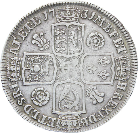 Rare 1731 Half Crown Coin Silver, Roses and Plumes George II of Great Britain