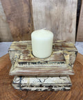 Rustic Church Candle Holder / Indian Pillar Base / Farmhouse Decor Cream