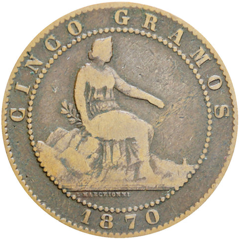 1870 OM 5 Centimos CoinSpain Cinco Centimos