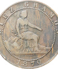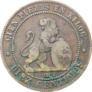 Spain 1870 OM Diez Centimos 10 Centimos Coin