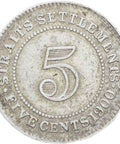 Straits Settlements Queen Victoria 1900 Five Cents Silver Coin