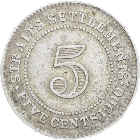 Reverse legend: “STRAITS SETTLEMENTS 5 •FIVE CENTS 1900”