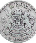 Reverse legend: “1 KRONA BRÖDRAFOLKENS VÄL 1904 E.B.”