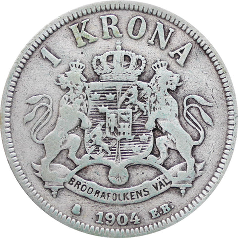 Sweden 1904 1 Krona Oscar II Coin Silver