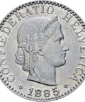Obverse legend: “CONFŒDERATIO HELVETICA LIBERTAS 1885”