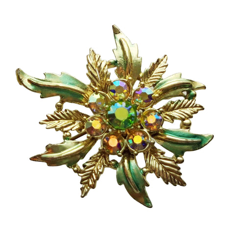 Vintage Brooch Flower Glass Crystals