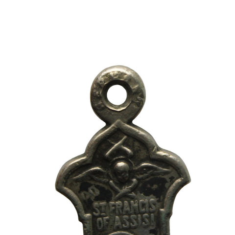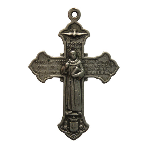 Unique design vintage devotional Franciscan cross with the blessing of St. Anthony of Padua on one side and St. Francis Assisi blessing on reverse side.