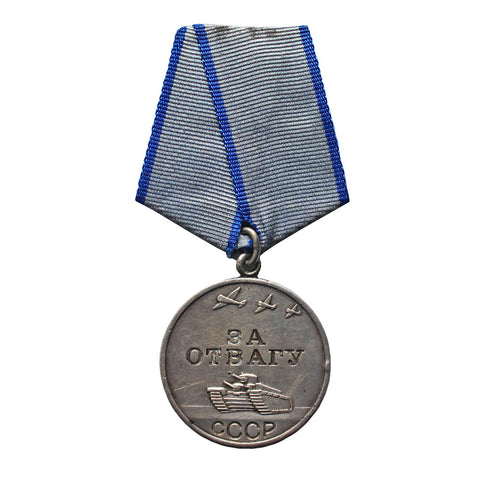 The Medal for Courage was created by the decision of the Presidium of the Supreme Soviet of the USSR on October 17, 1938. It was awarded to soldiers of the Soviet Army, Navy, border and internal troops and other citizens of the USSR, as well as to persons who are not citizens of the USSR, for personal courage and bravery displayed in battles against the enemies of the socialist fatherland, while protecting the state border of the USSR, during the performance of military duties in circumstances involving a risk to life.